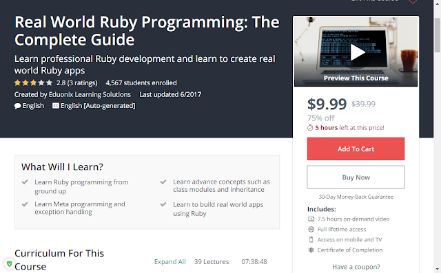 Các bạn có thể xem thêm về sự mô tả sơ lược hoặc mua khoá học ủng hộ tác giả tại https://www.udemy.com/real-world-ruby-programm. . .